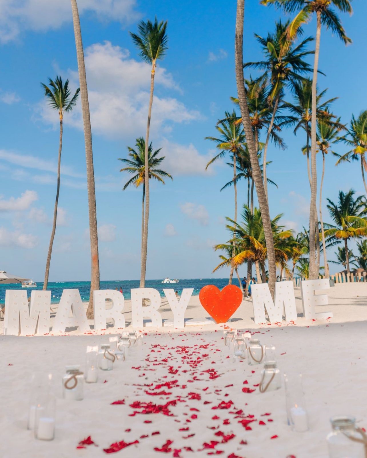 A Beach Proposal: Love Written in the Sands The pristine beaches of Punta Cana provide a timeless and classic setting for a wedding proposal. Picture walking hand in hand with your loved one along the powdery white sands as the waves gently kiss the shore. Choose a secluded spot, adorned with candles and rose petals, to express your love and ask the all-important question. A beach proposal in Punta Cana is a symbol of eternal love written in the sands of time.