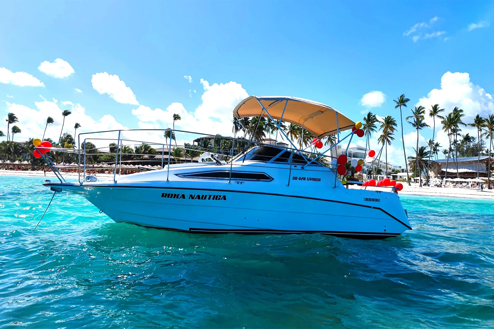 Join us for an exciting boat adventure along the stunning Bavaro Beach! During our 4-hour journey, our boat will cruise along the scenic Bavaro coastline, offering you breathtaking views and refreshing sea breezes. But wait, there's more! Dive into a special snorkeling area where you can explore the vibrant underwater reef. We provide masks, vests, and fins onboard for your comfort. Next, we'll glide past the Marinarium, where you'll have the opportunity to observe playful dolphins from the comfort of the yacht. We'll make a stop at the Dolphin Park for a close encounter with these charming sea creatures. And the highlight of the trip? A visit to the natural pool! Take a dip in the crystal-clear, tranquil waters of this unique spot, perfect for relaxation and creating unforgettable memories.
